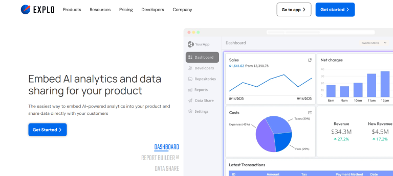 A: Explo is an embedded analytics platform that helps software companies integrate customer-facing dashboards, reports, and AI-driven analytics directly into their applications.