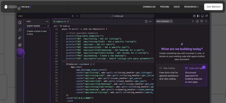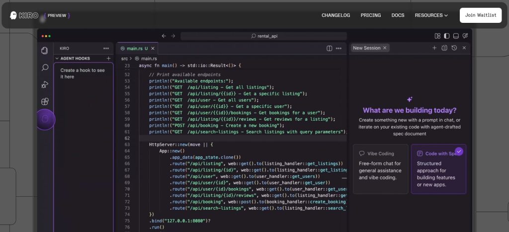 - Multi-File Context & Goal-Oriented Development: Kiro analyzes and edits multiple files across your project to fulfill broader requests like “add user authentication” or “create a REST API.”