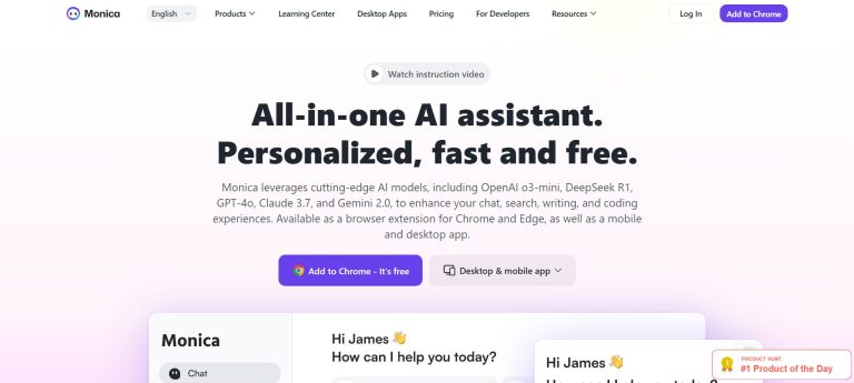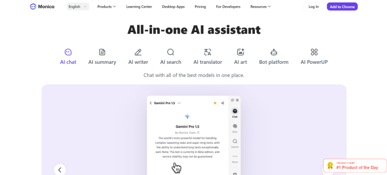 A: Monica is an all-in-one AI assistant available as a browser extension and application, designed to enhance productivity across chat, search, writing, translation, and creative tasks.