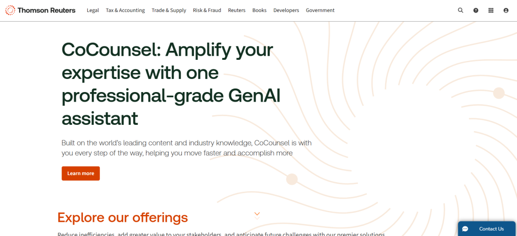 - Integrated Solutions: Seamlessly embeds AI capabilities into its flagship products like Westlaw, Checkpoint, and ONESOURCE, enhancing existing tools with intelligent features.